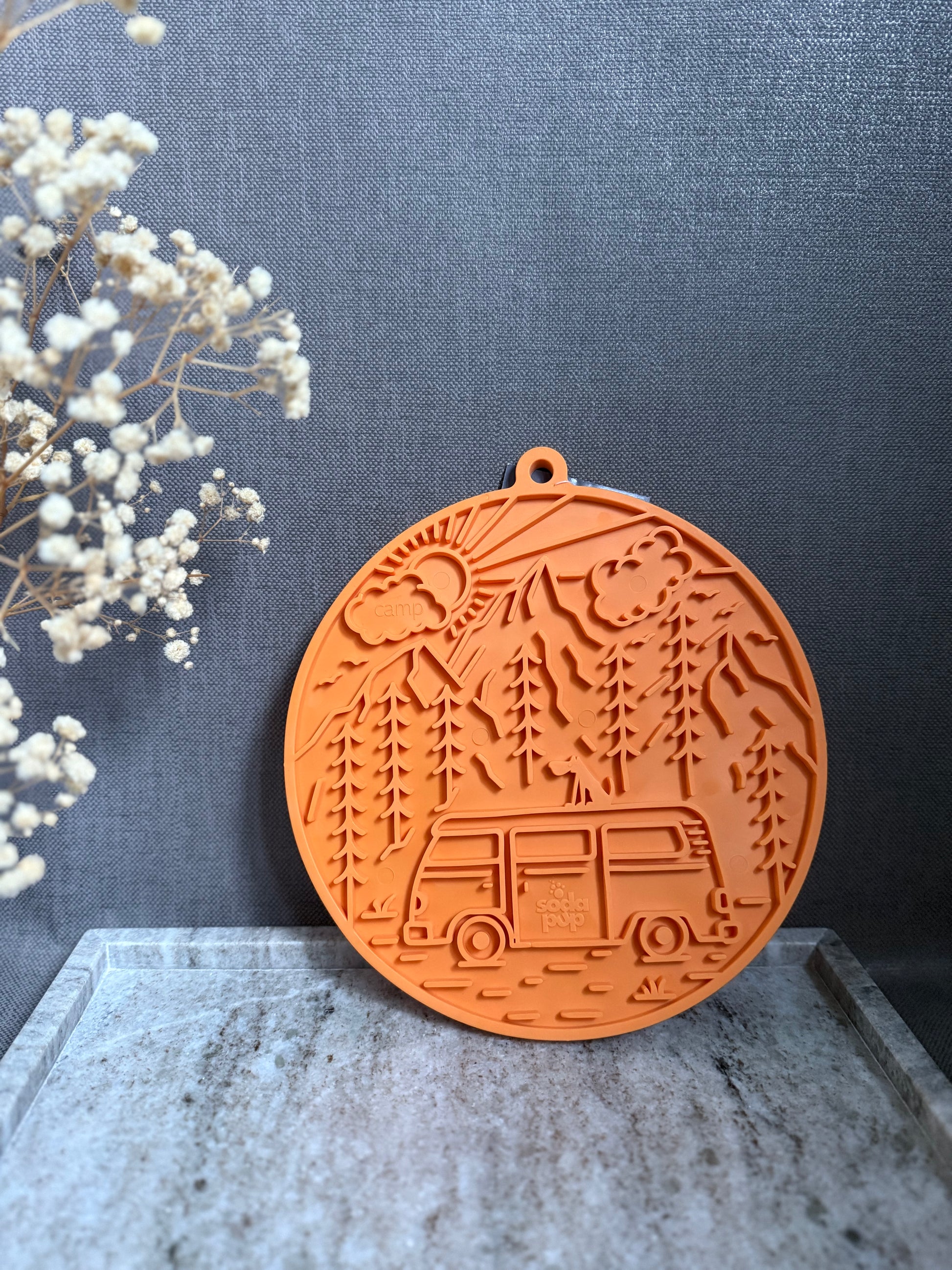 Ce tapis de léchage est parfait pour ajouter une touche de voyage à cette saison d'automne ! Il permet une activité de léchage en y mettant des liquides, tels que nos smoothies, ou yaourts.