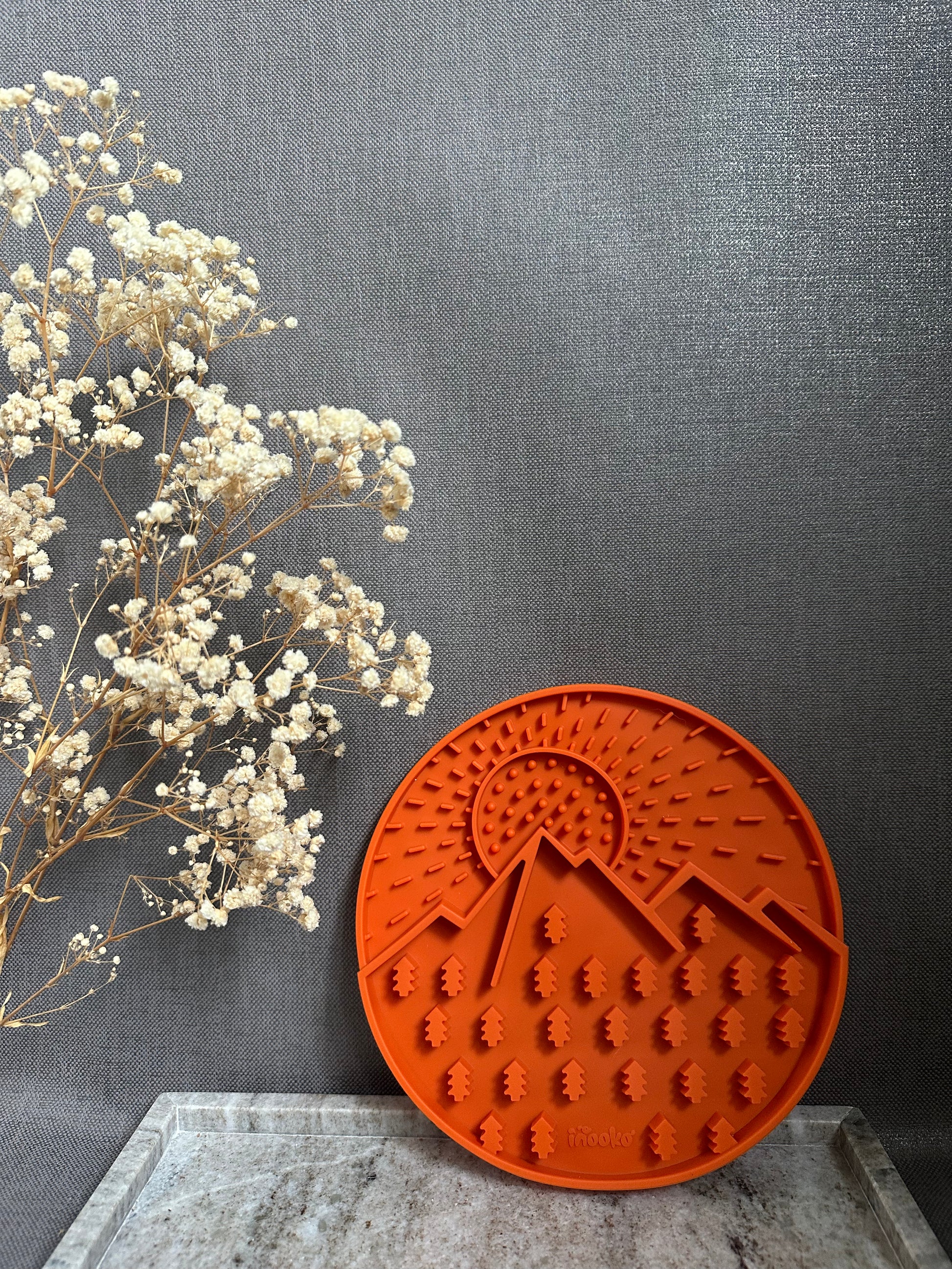 Ce tapis de léchage est inspiré des Alpes Françaises et des paysages dorés lors des couchés de soleil. Il offre des texture et des formes différentes pour plus de challenge ! Il permet une activité de léchage en y mettant des liquides, tels que nos smoothies, ou yaourts.